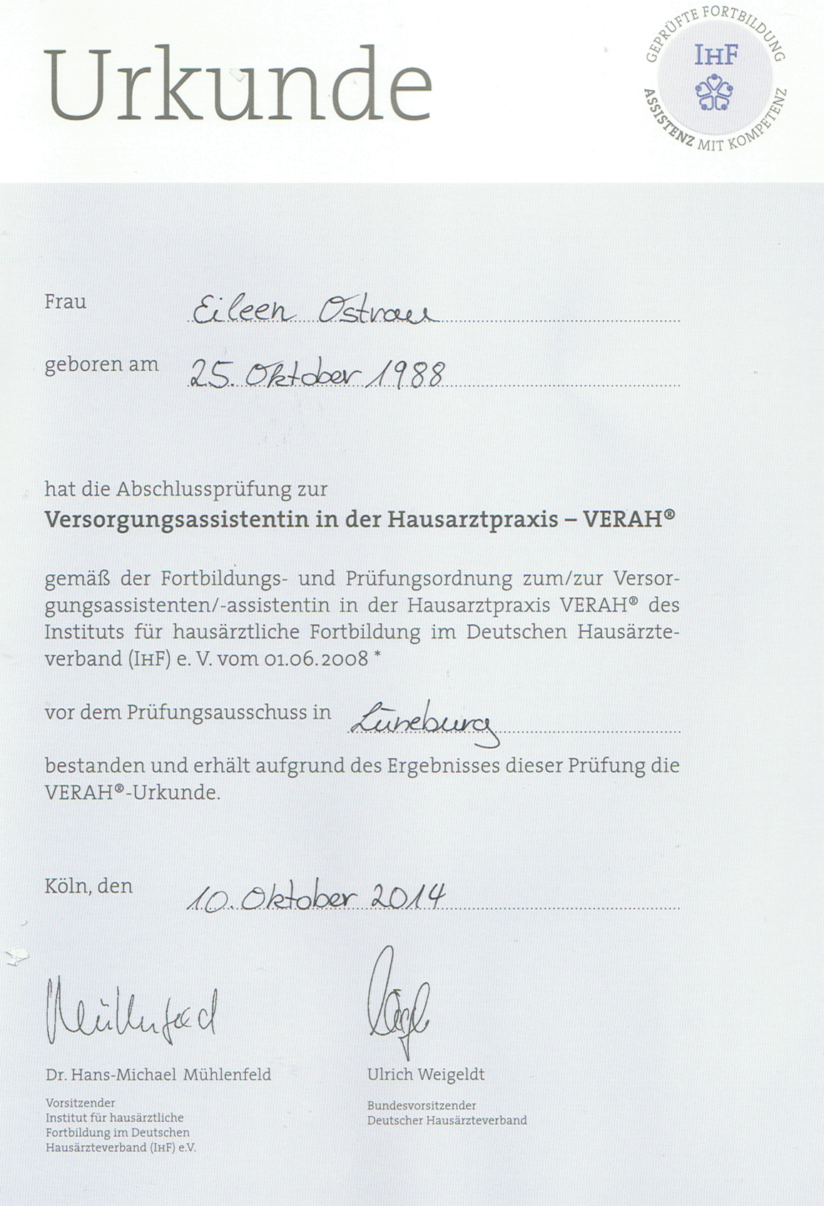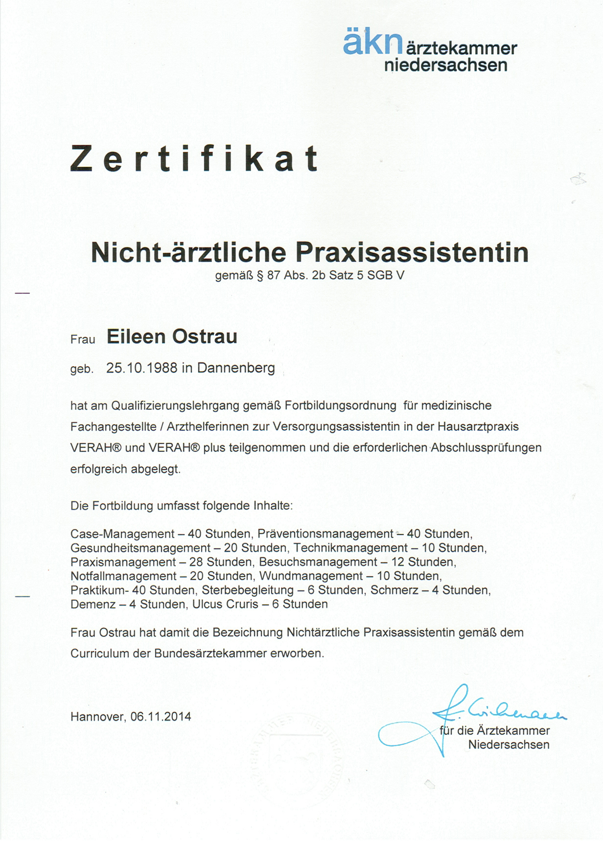Eileen Ostrau unsere Hauptstütze unter den Arzthelferinnen und Praxismanagerinnen hat mit ihrer Zusatzqualifikation eine neue Möglichkeit eröffnet. Die Praxen werden immer größer, andere schließen und die Menschen werden älter.