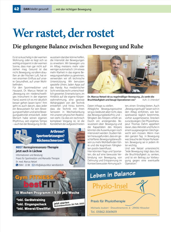 Am vergangenen Samstag (5. Februar 2022) wurde diese neue Behandlungsmöglichkeit in Lüchow auch in dem Beileger ‘DAN bleibt gesund‘ der Elbe-Jeetzel-Zeitung vorgestellt: